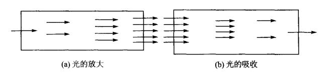 光的放大和吸收过程往往是同时进行的,总的结果可以是加强或减弱,这取决于这一对矛盾中哪一方处于支配地位。