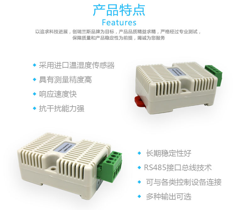 本款湿湿度变送器采用进口湿湿度传感器做为敏感器件,具有测量精度高、响应速度快、抗干扰能力强、长期稳定性好等特点;产品体积小、重量轻、易于安装和维护,标准仪表连接,实现温湿度状态在线监测的实用型一体化变送器,可广泛应用于各种需要对空气温湿度进行测量与控制的场合。