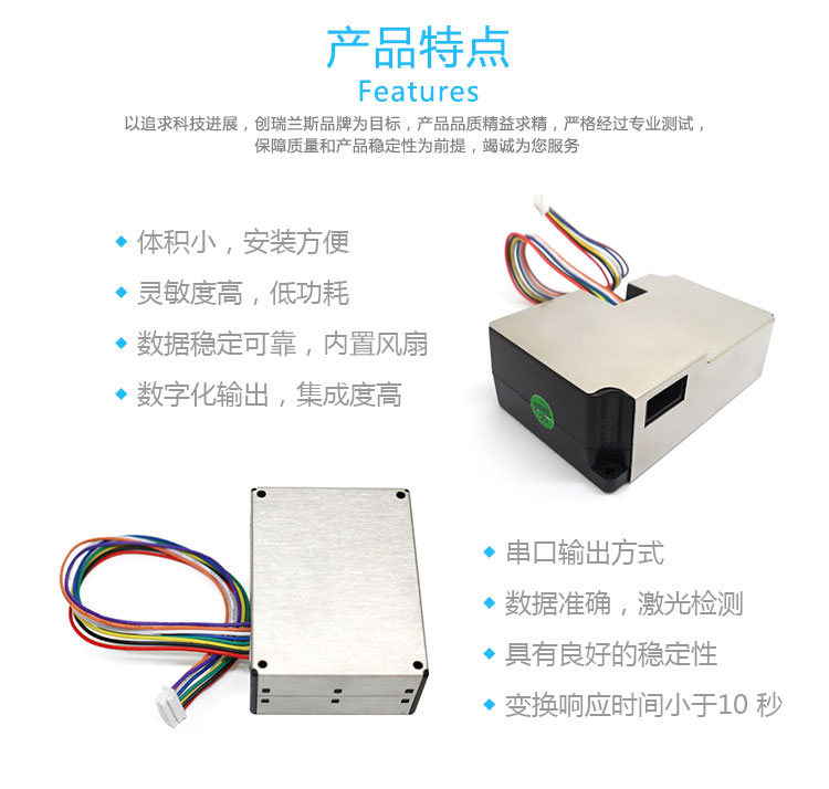 描述:PMS1003/PMS3003/PMS5003三种型号可选,使用激光散射原理,能够得到空气中0.3 ~ 10 微米悬浮颗粒物浓度,数据稳定可靠;内置风扇,数字化输出,集成度高;