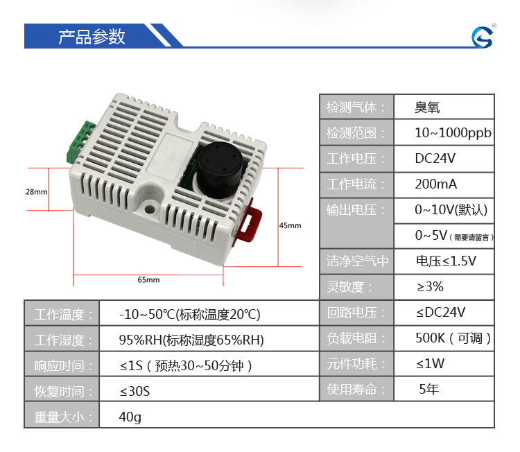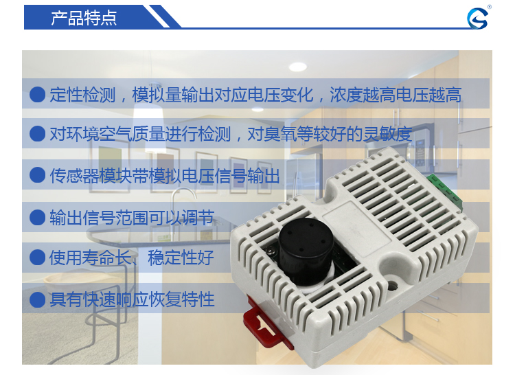 这款臭氧传感器模块主要用于环境中臭氧浓度定性检测,适用于家庭、环境的气体探测设备,适宜于臭氧气体的探测。定性检测,模拟量输出对应电压变化,浓度越高电压越高;对环境空气质量进行检测,对臭氧气体有较好的灵敏度;臭氧传感器模块带模拟电压信息输出;输出信号范围可以调节;使用寿命长、稳定性好;具有快速响应快速恢复特性。