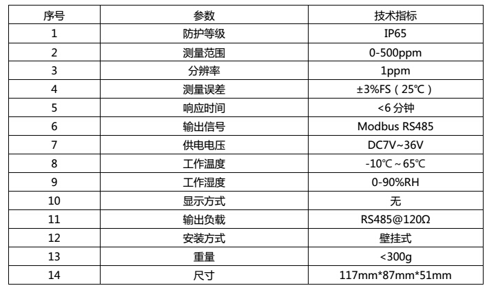 输出 4-20mA(量程0-100ppm) RS485带继电器输出